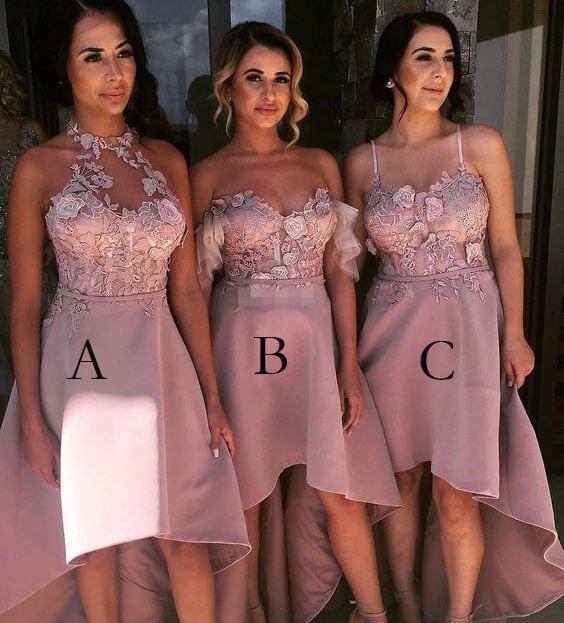 3 Styles Blush Hi Low Bridesmaid Dresses