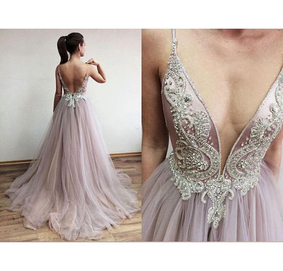 Sexy Spaghetti Straps Split Side Prom Dresses with Beaded
