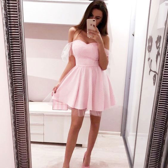 Pink Off the Shoulder Short Homecoming Dresses Under 100