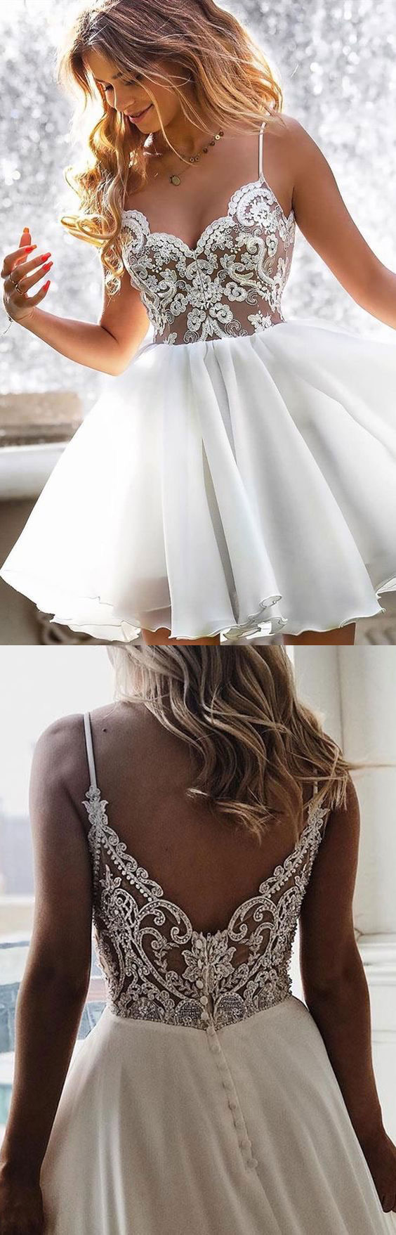 Spaghetti Straps Short Homecoming Dresses with Appliques