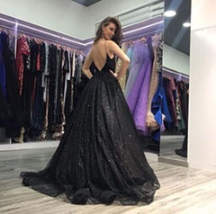 Spaghetti Straps Black Split Side Long Prom Dresses