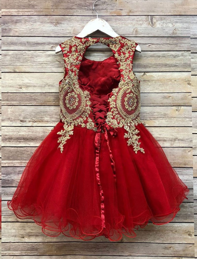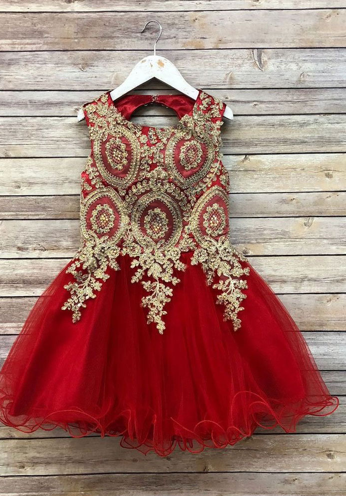 Red Tulle Flower Girl Dresses with Gold Appliques