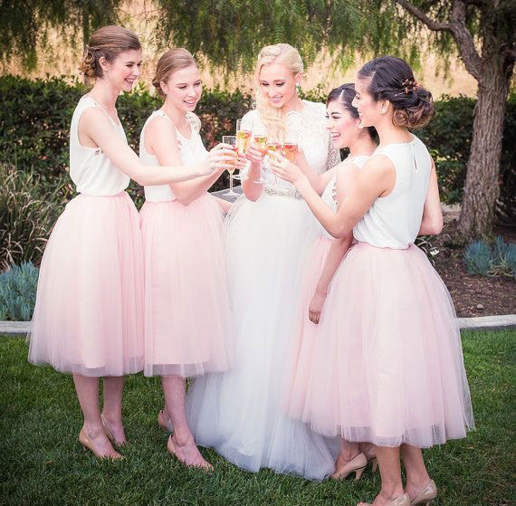 Two Piece Pink Tea Length Bridesmaid Dresses for Wedding