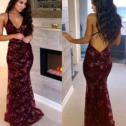 Mermaid Burgundy Mermaid Prom Dresses with Sequins