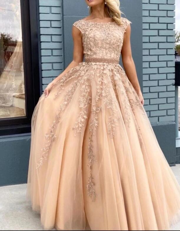 Elegant Long Prom Dresses with Appliques Waist with Beaded