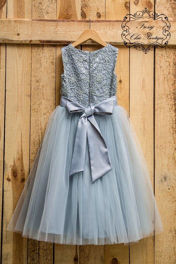 Ice Blue Tulle Flower Girl Dresses Waist with Handmade Flowers