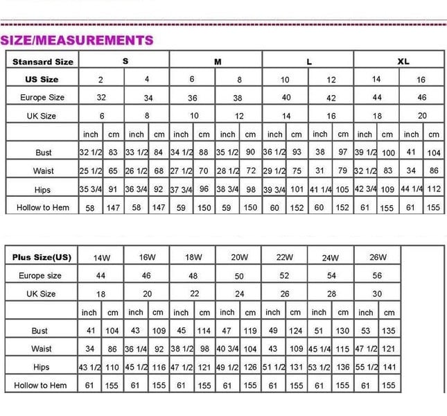 Hollow to Hem___inch/cm (for short dress) ; Hollow to Floor___inch/cm (for long dress)