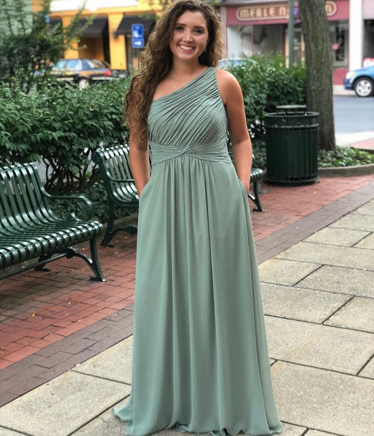 One Shoulder Sage Bridesmaid Dresses with Pockets