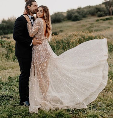 Round Collar Sparkly Wedding Dresses Bridal Gown