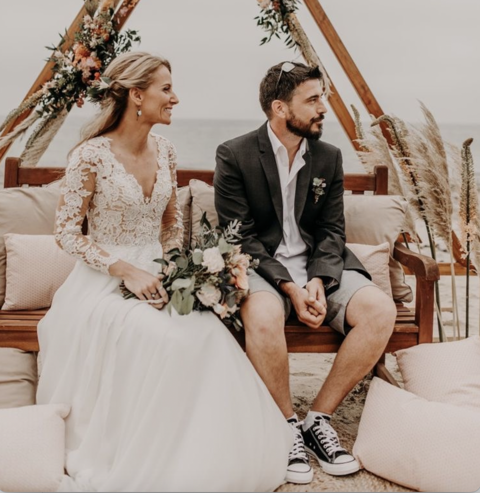 V Neck Wedding Dresses Bridal Gown with Sleeves
