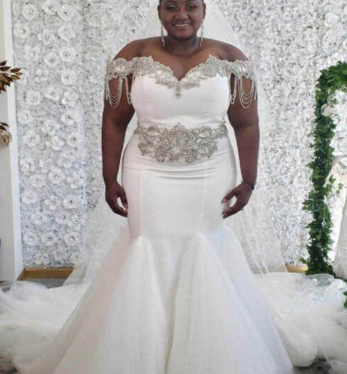 Plus Size Bridal Gown Wedding Dress with Rhinestones