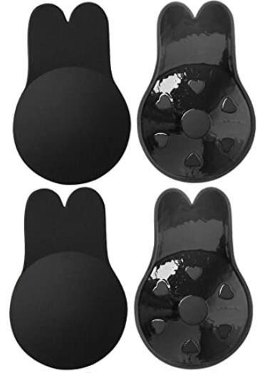 Black 2 Pairs Sticky Bra Invisible Adhesive Bra Backless Strapless Reusable Push Up Lift Nipple Covers for Women
