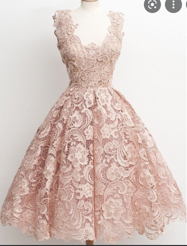 Tea Length Lace Pink Prom Dresses Homecoming Gown