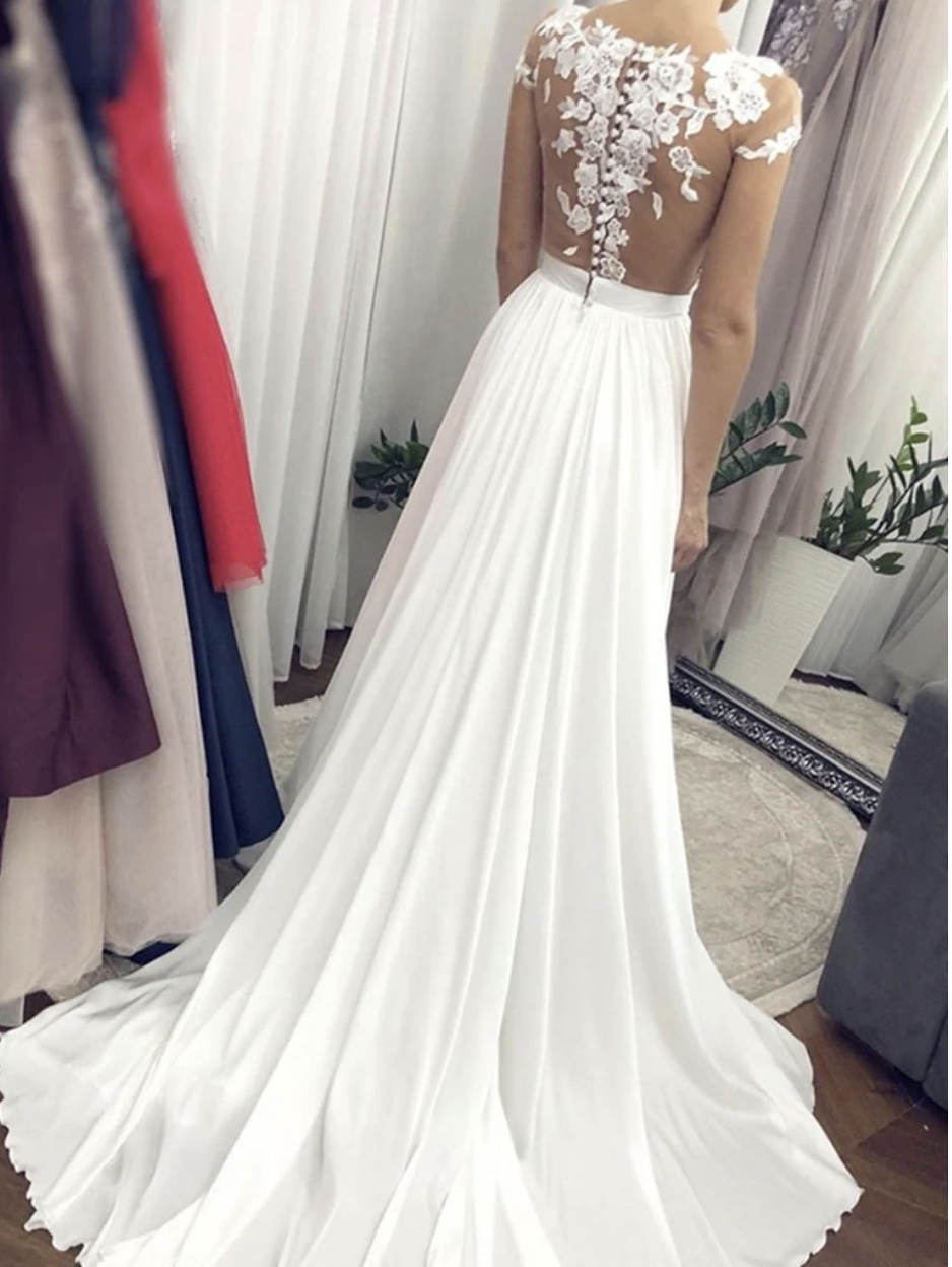 Cap Sleeves Wedding Dresses Bridal Gown with Lace