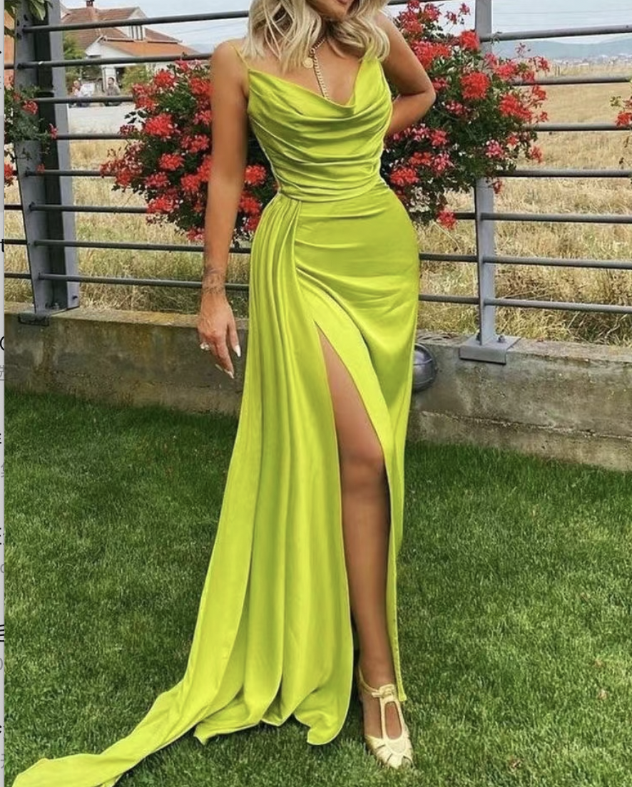 Grass Green Prom Dresses Spaghetti Straps