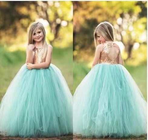 Mint Green Flower Girl Dresses with Open Back