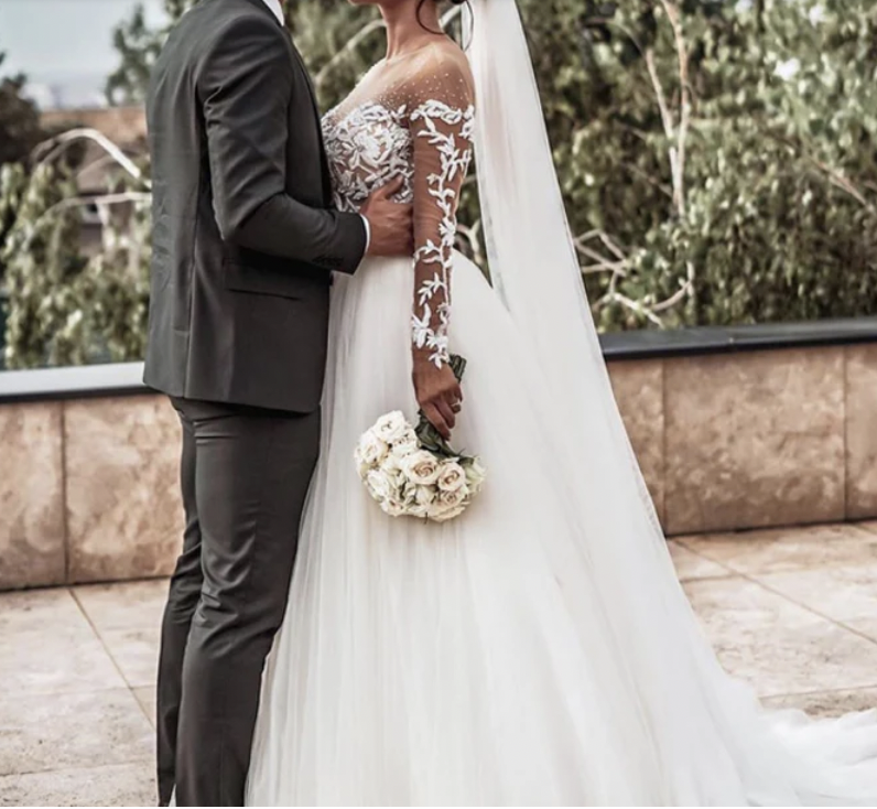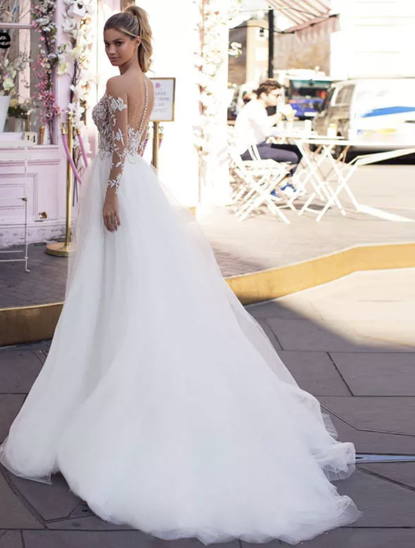 Wedding Dresses Bridal Gown with Sleeves Lace Appliques WD65