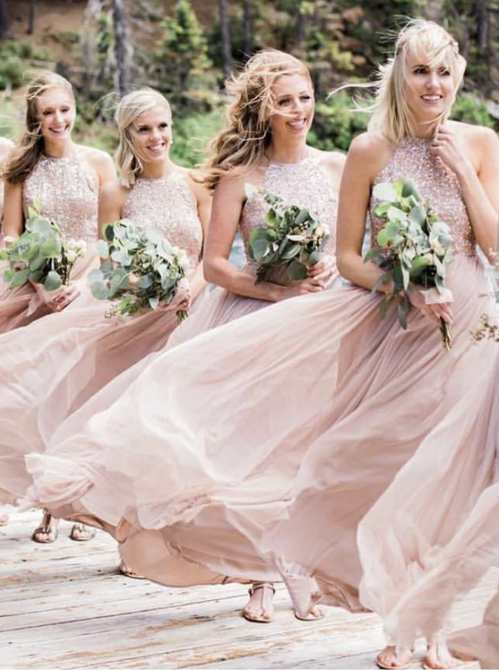 Halter Bridesmaid Dresses Pale Pink with Beading