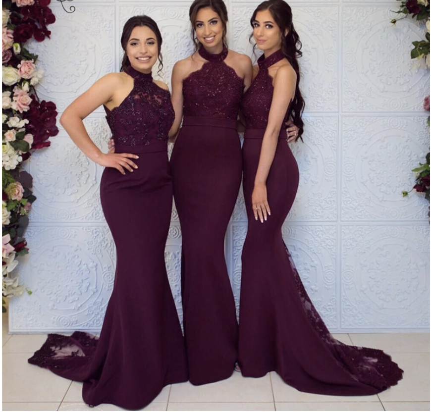 High Neck Mermaid Bridesmaid Dresses Mermaid for Wedding