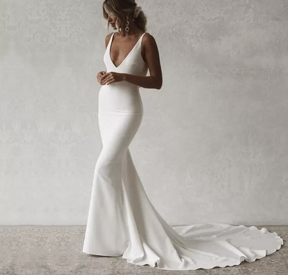 Mermaid Backless Wedding Dresses Bridal Gown V Neck
