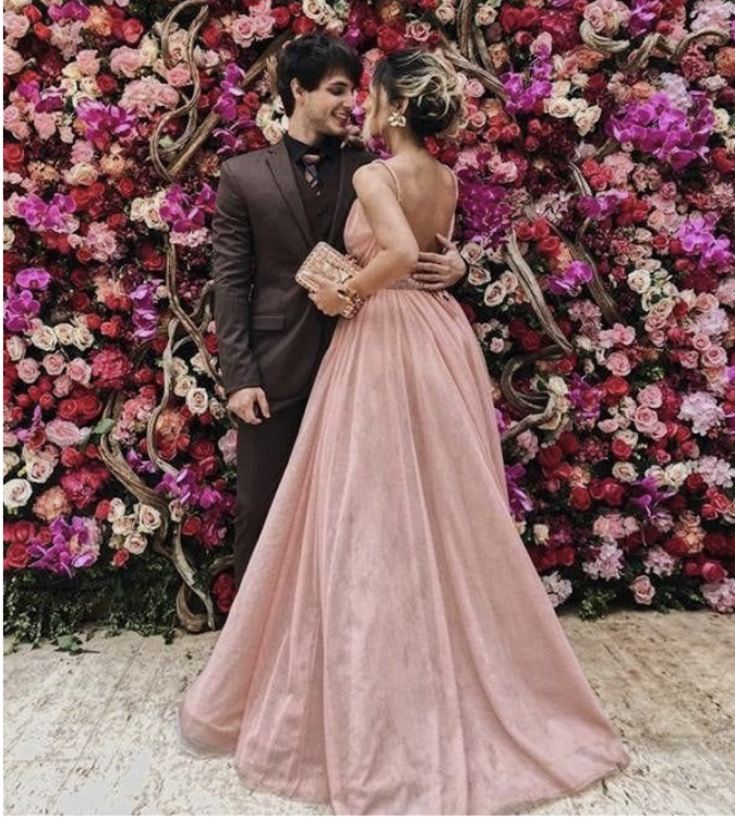 Prom Dresses Pink Spaghetti Straps Floor Length