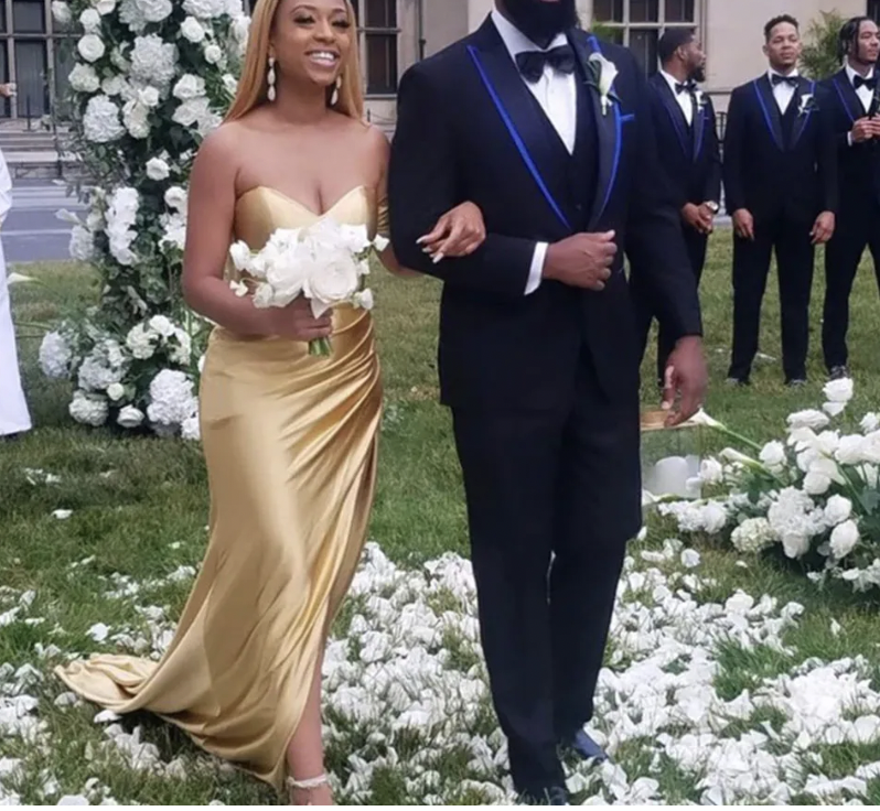Sweetheart Gold Bridesmaid Dresses for Wedding Slit Side