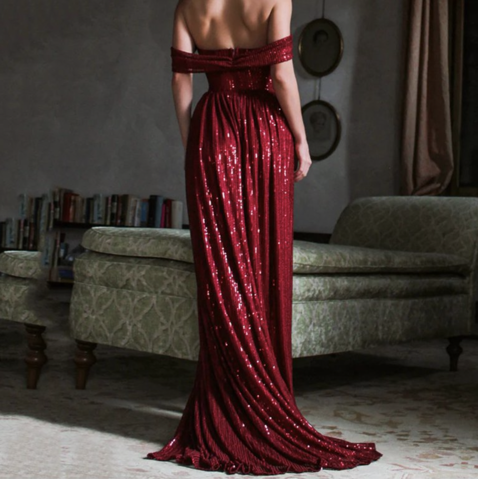 Off Shoulder Bridesmaid Dresses Sequins Slit Side