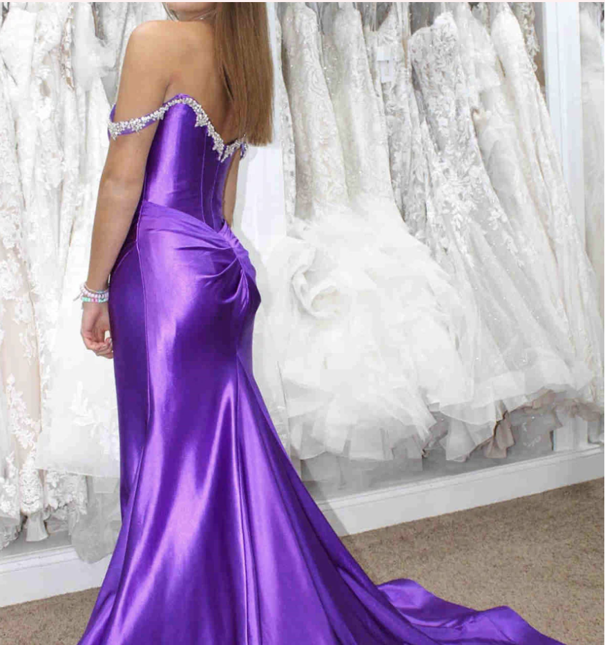 Purple Off Shoulder Bridesmaid Dresses Slit Side with Beading