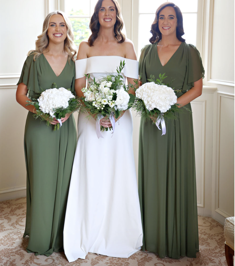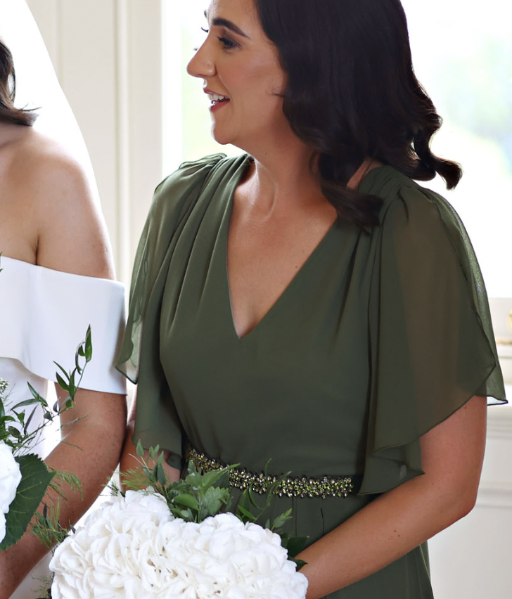 V Neck Bridesmaid Dresses Cap Sleeves Sage Green