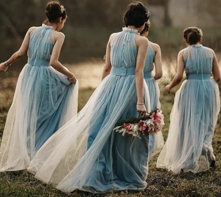 Gray Blue Bridesmaid Dresses High Neck