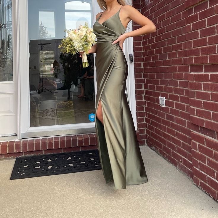 Satin High Slit Ruched Dress Wedding Guest/Bridesmaids Dresses