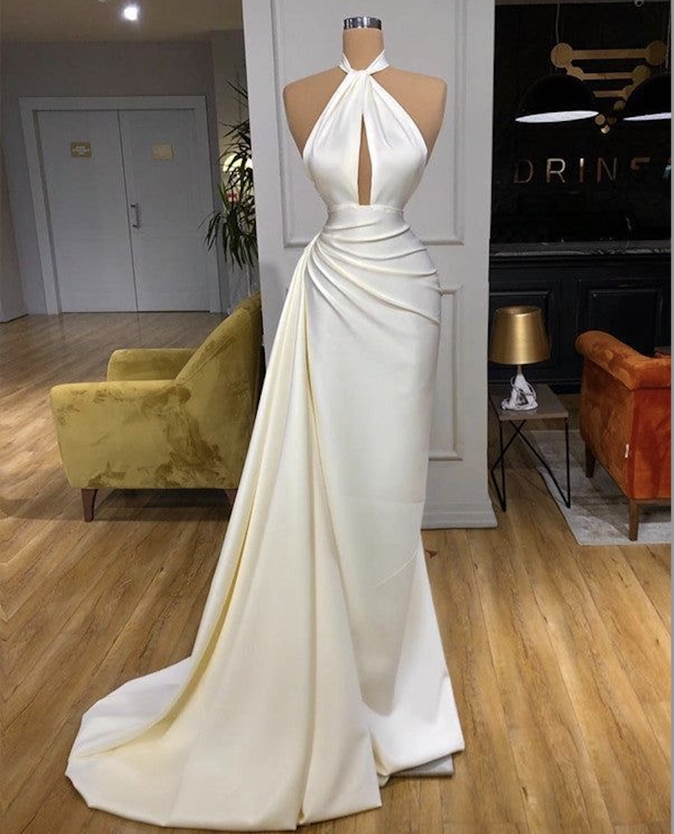 Halter White Prom Dresses Long Gown
