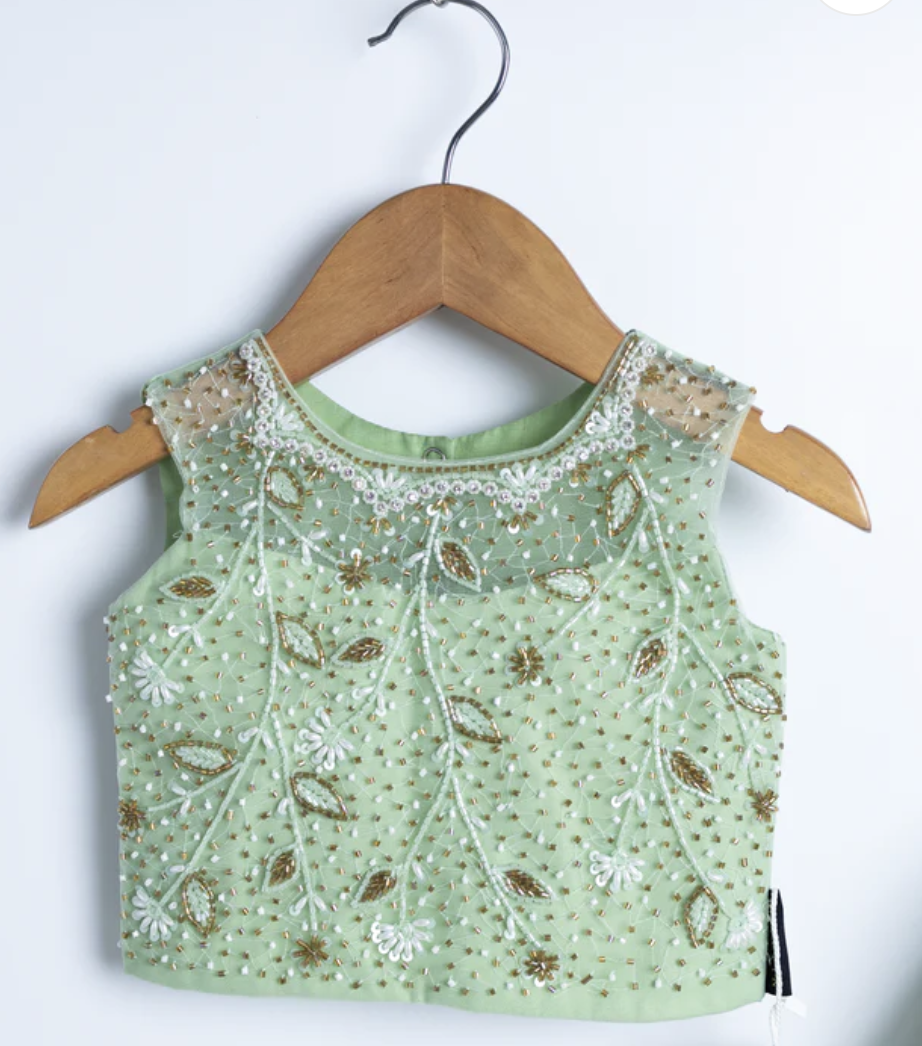 Two Piece Sage Flower Girl Gown Top with Rhinestones
