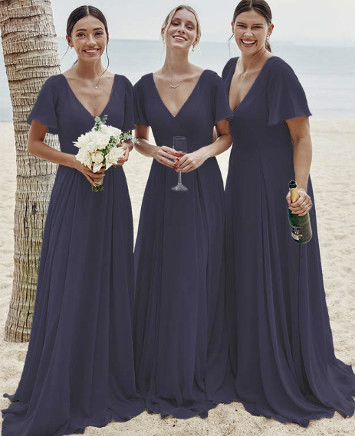 V Neck Bridesmaid Dresses Chiffon