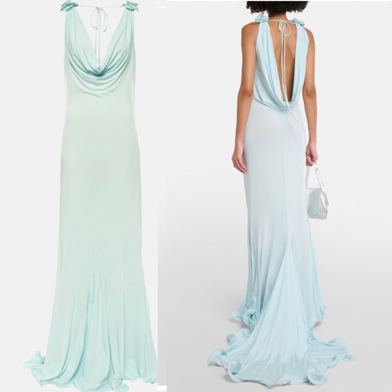 Light Green Prom Dresses Draped Back Long Gown