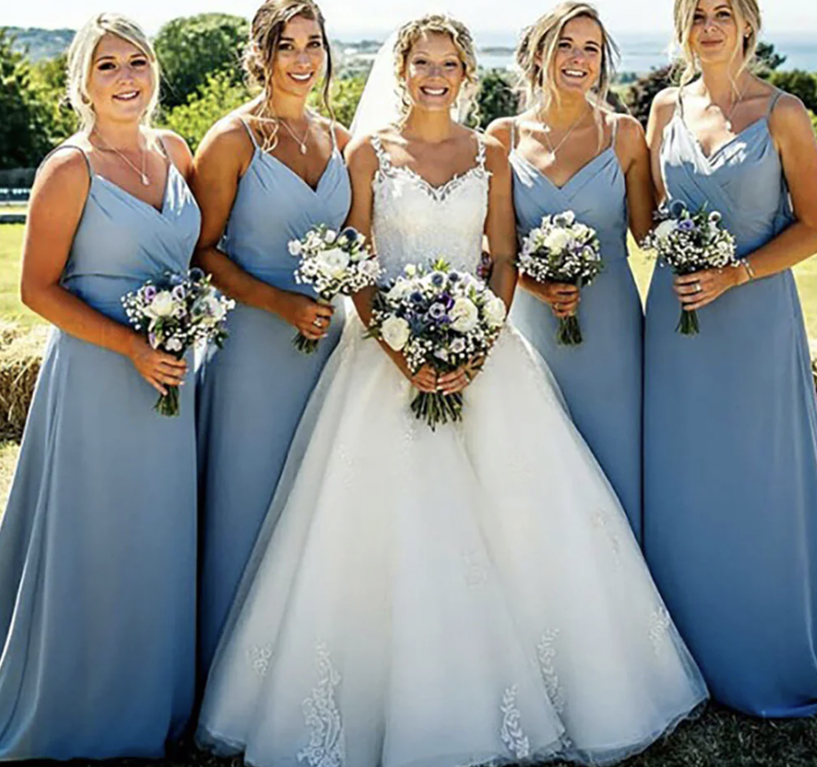 Dusty Blue Bridesmaid Dresses Spaghetti Straps