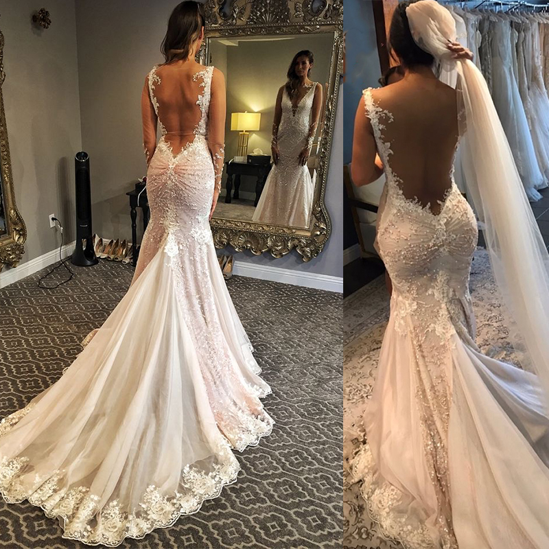 Mermaid Wedding Gown Backless V Neck WD9